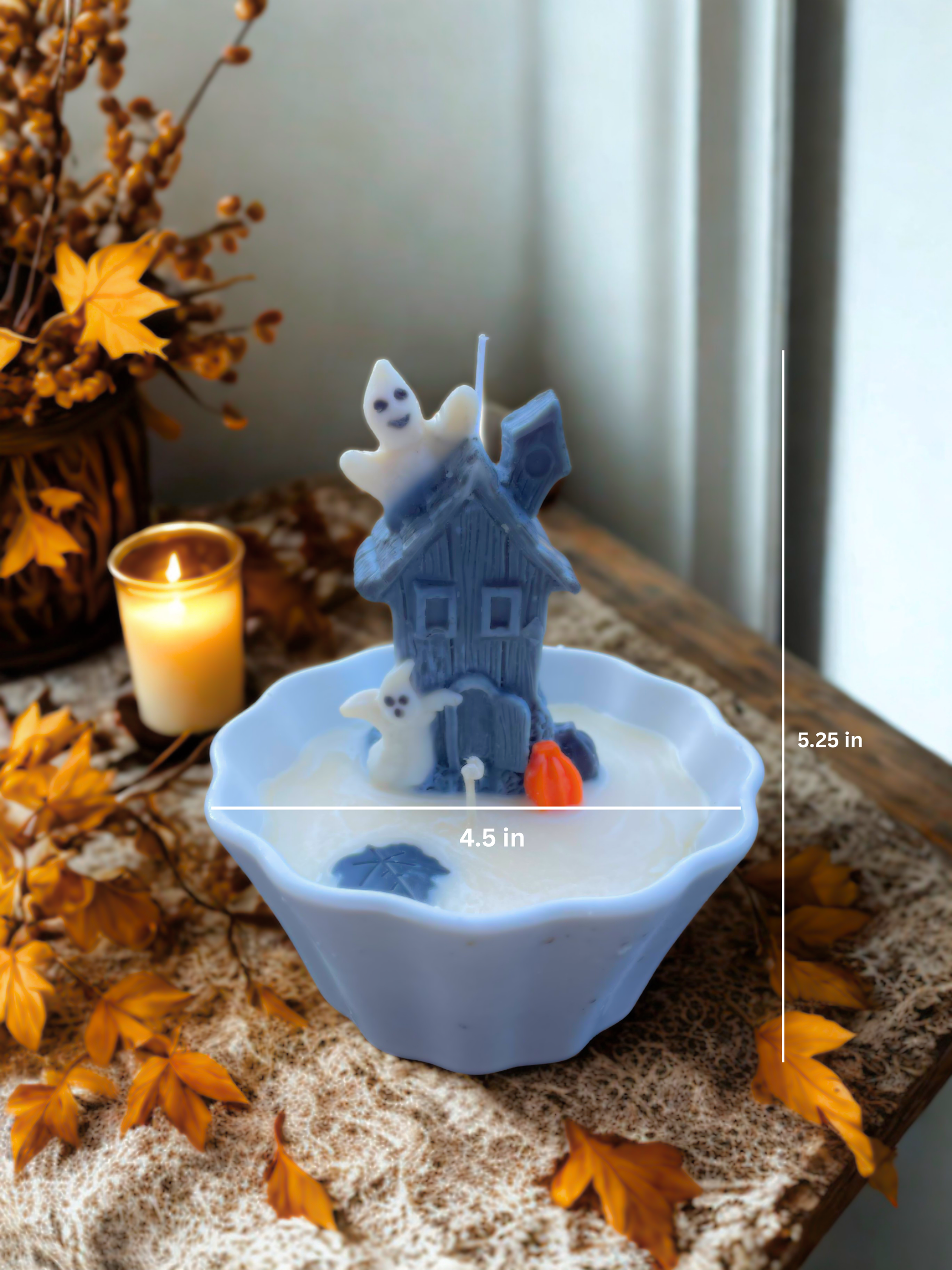 Crafted from natural soy wax and carefully poured by hand into a beautiful white ceramic bowl, the Halloween Haunting House candle brings a refined ambiance to your space. Its 7oz size offers a balanced burn time, while the inviting fragrance of apple cinnamon evokes warmth and subtle nostalgia. Perfect for adding a fun and unique touch to your Halloween decorations.